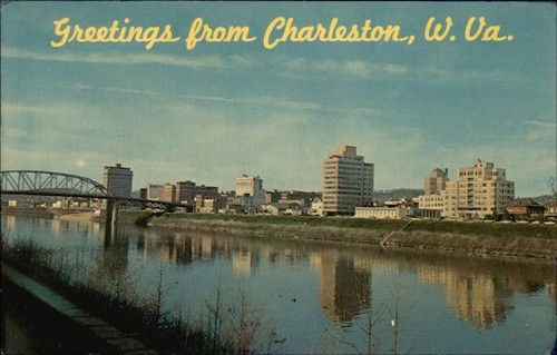 Charleston Wv View Of City And River Kanawha County West Virginia Postcard Ebay